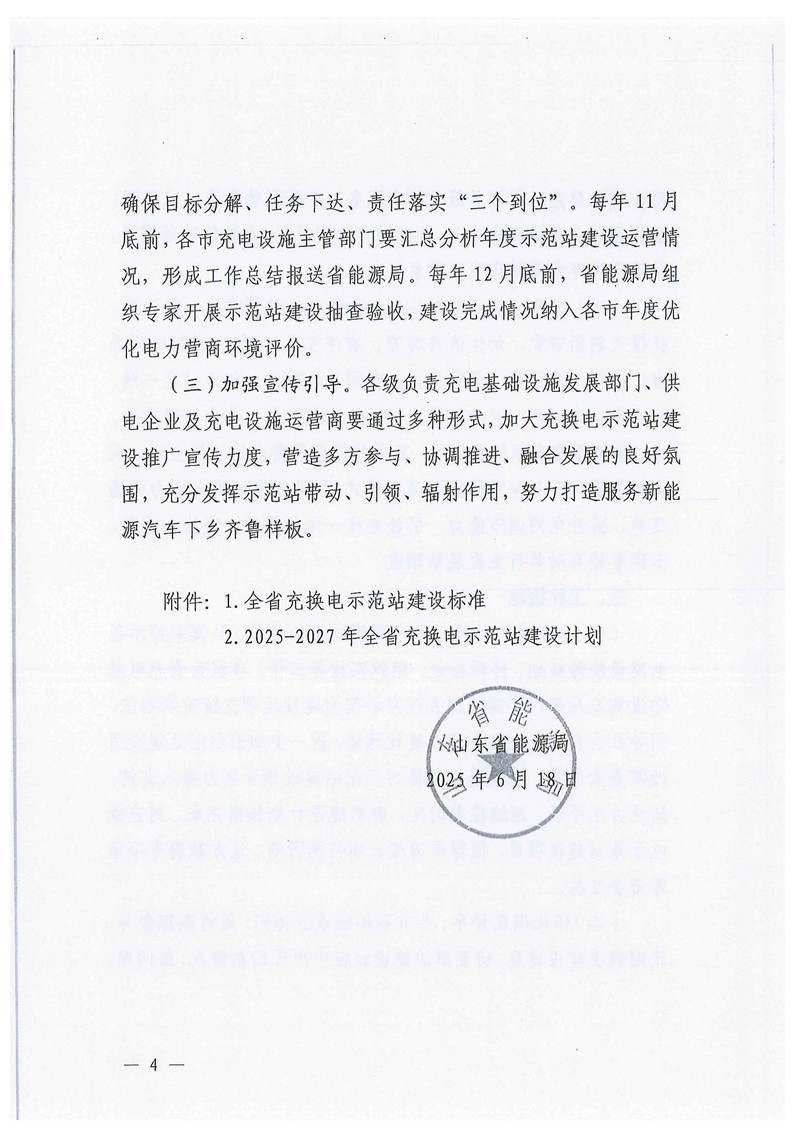 感謝貴(guì)局多年來對縣(xiàn)發改局工作(zuò)的關心和支持!2025年6月18日,山東省能(néng)源局印發了《關於推動全省充換電(diàn)示範站(zhàn)建設的通知》,對全省(shěng)充換電示範站建設工作進行安排部署(shǔ)。9月24日,國(guó)家發展改革委等部門研究製定了《電動汽車充電設施服務能力“三年倍增”行(háng)動方案(2025-2027年)》,加大(dà)力度完善電動汽車充電設施服務網絡,提升消費品質。近(jìn)期,市能源局(jú)下達我縣2025-2027年建(jiàn)設省(shěng)充換電示範站(zhàn)任(rèn)務目標為:完成2個中型和2個小型示範站。根據國家省市有關部署(shǔ)和縣領導指(zhǐ)示要求,我縣規(guī)劃了(le)正大電力便民示範站、幸福公館示範站、“三館一官’示範站等省級(jí)示範(fàn)站,並正在加緊施工中。為確(què)保我縣充換電示範站建設順利(lì)推進,請貴局根據部門職能,協同配合做好示範站建設工作,為省級充換電示範站順利建設提供有力保障。